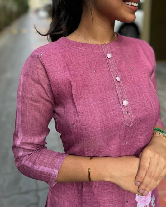 PURPLE TUSSAR KURTI WITH ELBOW SLEEVE