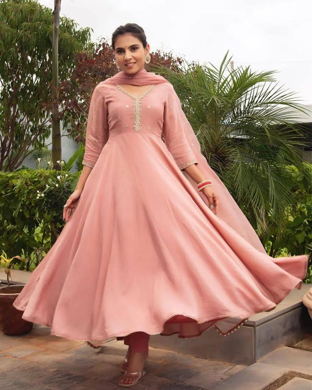 Expertly crafted from luxurious Roman silk, our 1401-roman silk gown exudes elegance and sophistication. Adorned with intricate Moti and Embroidery work, this gown will make you stand out at any special occasion. Complete your look with the matching georgette dupatta for a touch of grace and glamour.