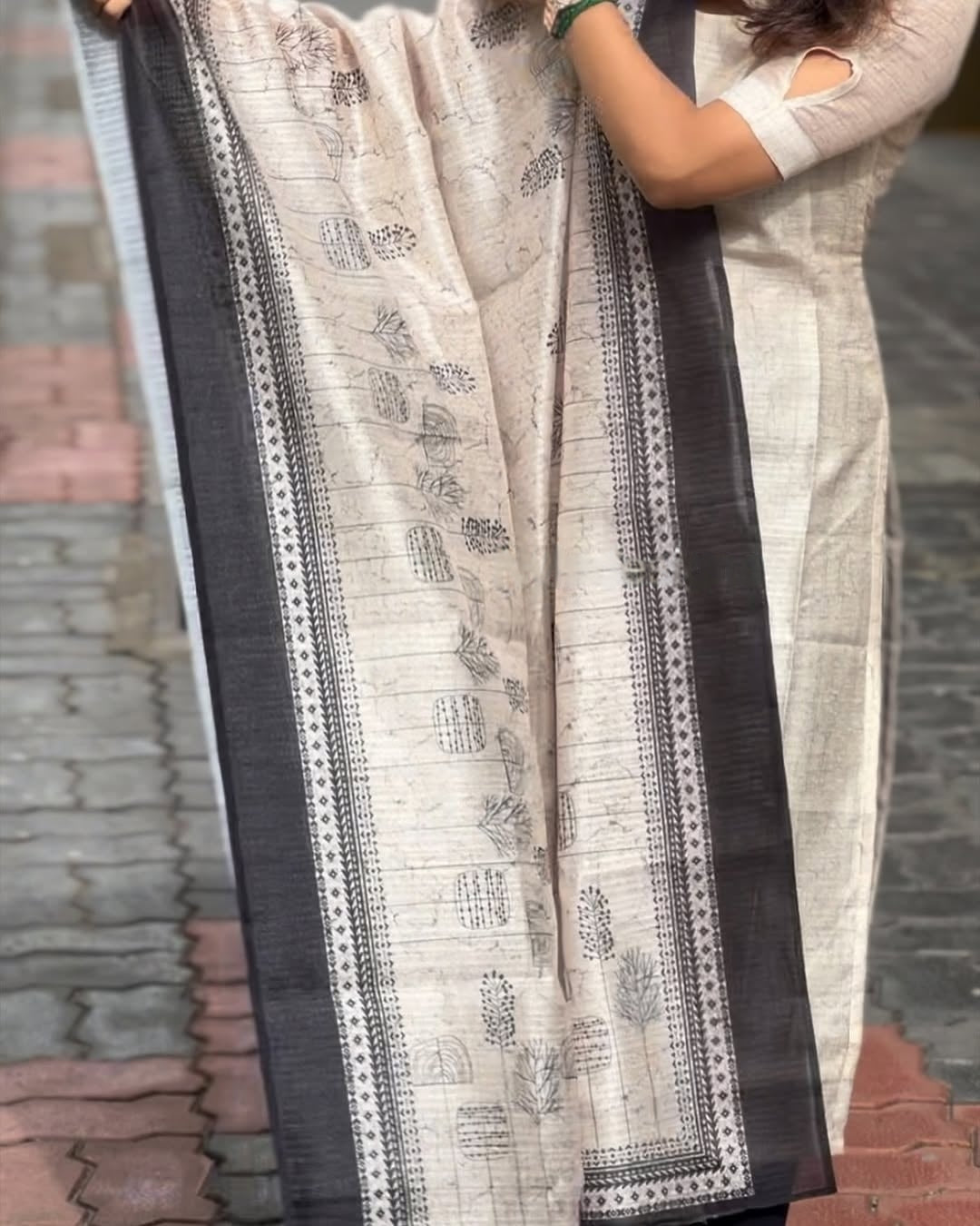 This elegant Tussar Silk Kurti is a stunning addition to any wardrobe. Made with luxurious silk, it boasts a beautiful design that is sure to turn heads. Paired with a matching dupatta, this Kurti is perfect for any occasion. Add a touch of sophistication to your style with this stylish and timeless piece.